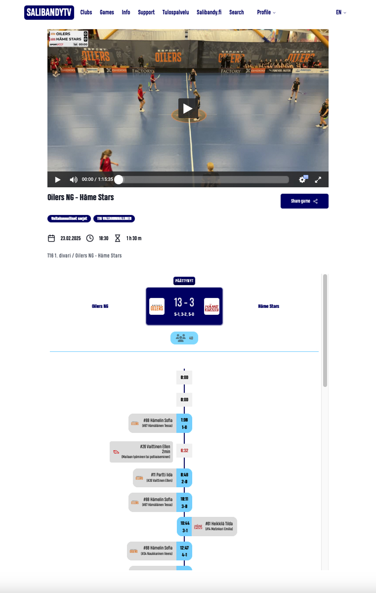 - API integration with match management systems (e.g., Nodeon, Torneopal) for seamless operations