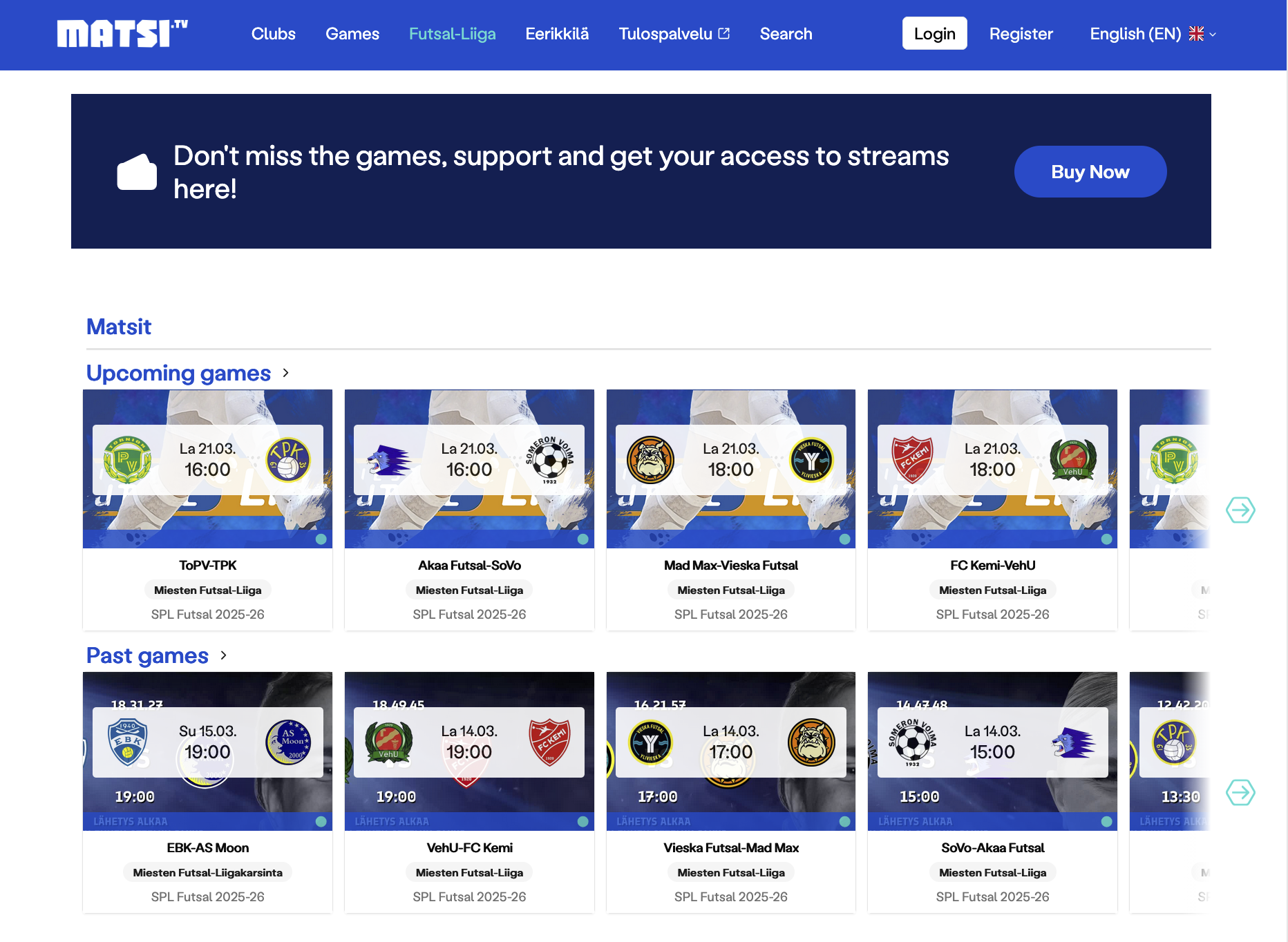 Futsalliiga.tv is accessible at its own address as part of the MATSI.TV service. In practice, this means fans can either go directly to Futsalliiga.tv or access the same content through MATSI.TV, where the league is featured as its own dedicated section. The same content is also available across MATSI.TV’s mobile and TV apps.