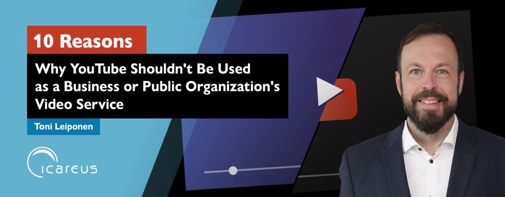 Here are ten key reasons why you shouldn’t rely on YouTube as your company’s or public organization’s primary video platform: 1 No Company or Public